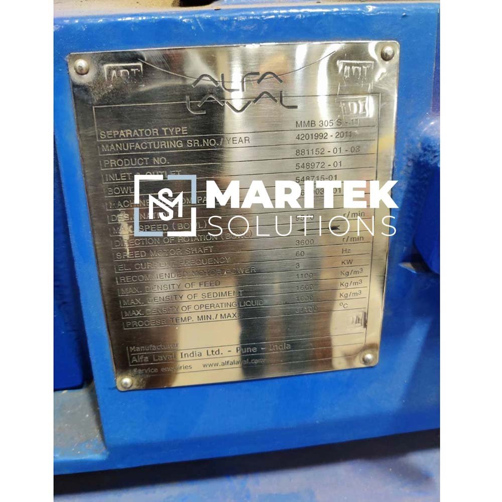 To receive a quote for Alfa laval MMB 305-S-11 Oil Filters separator, Kindly email us at info@mariteksolutions.com.