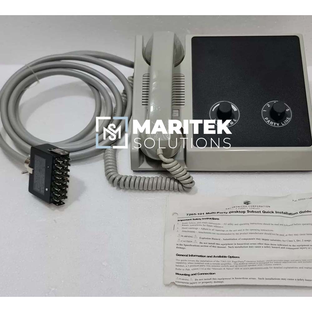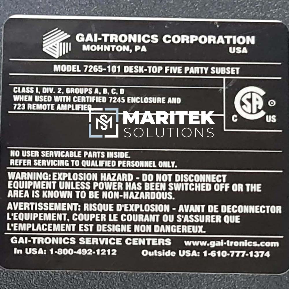 To receive a quote for Gai Tronics 7265-101 Intercom Subset, Kindly email us at info@mariteksolutions.com.