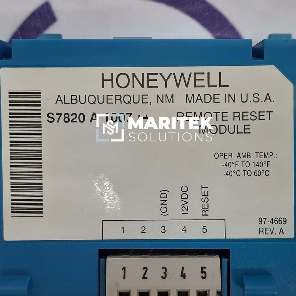 To receive a quote for Honeywell S7820 A 1007 Remote Reset Module(Burner Control), Kindly email us at info@mariteksolutions.com.