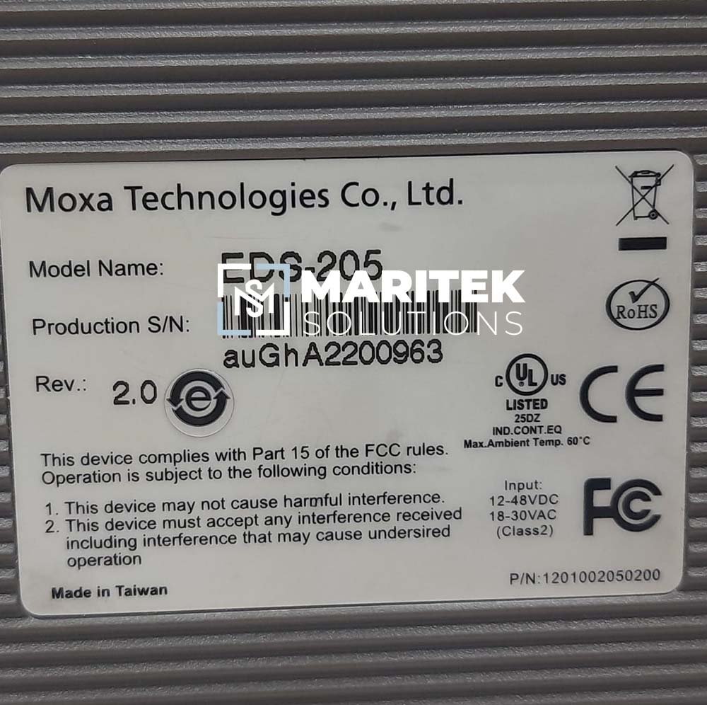 To receive a quote for MOXA EDS-205 Managed Ethernet switch, Kindly email us at info@mariteksolutions.com.