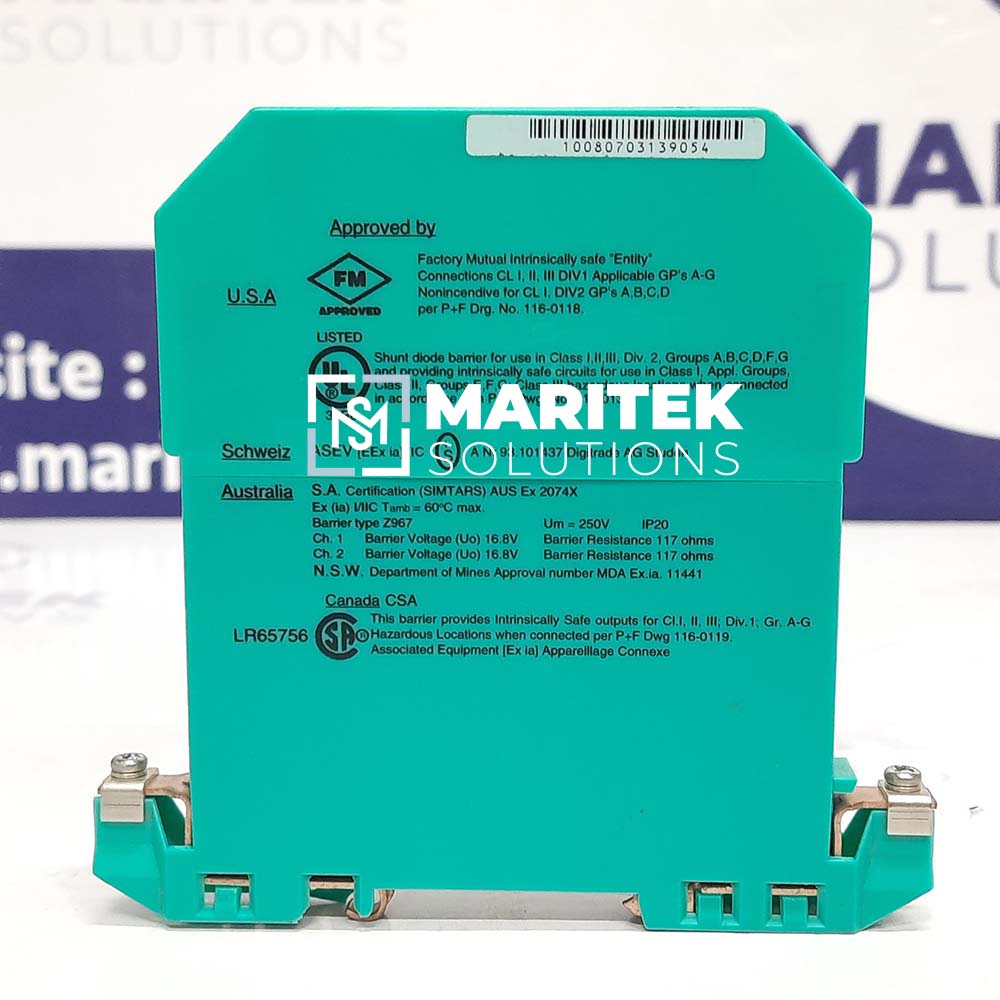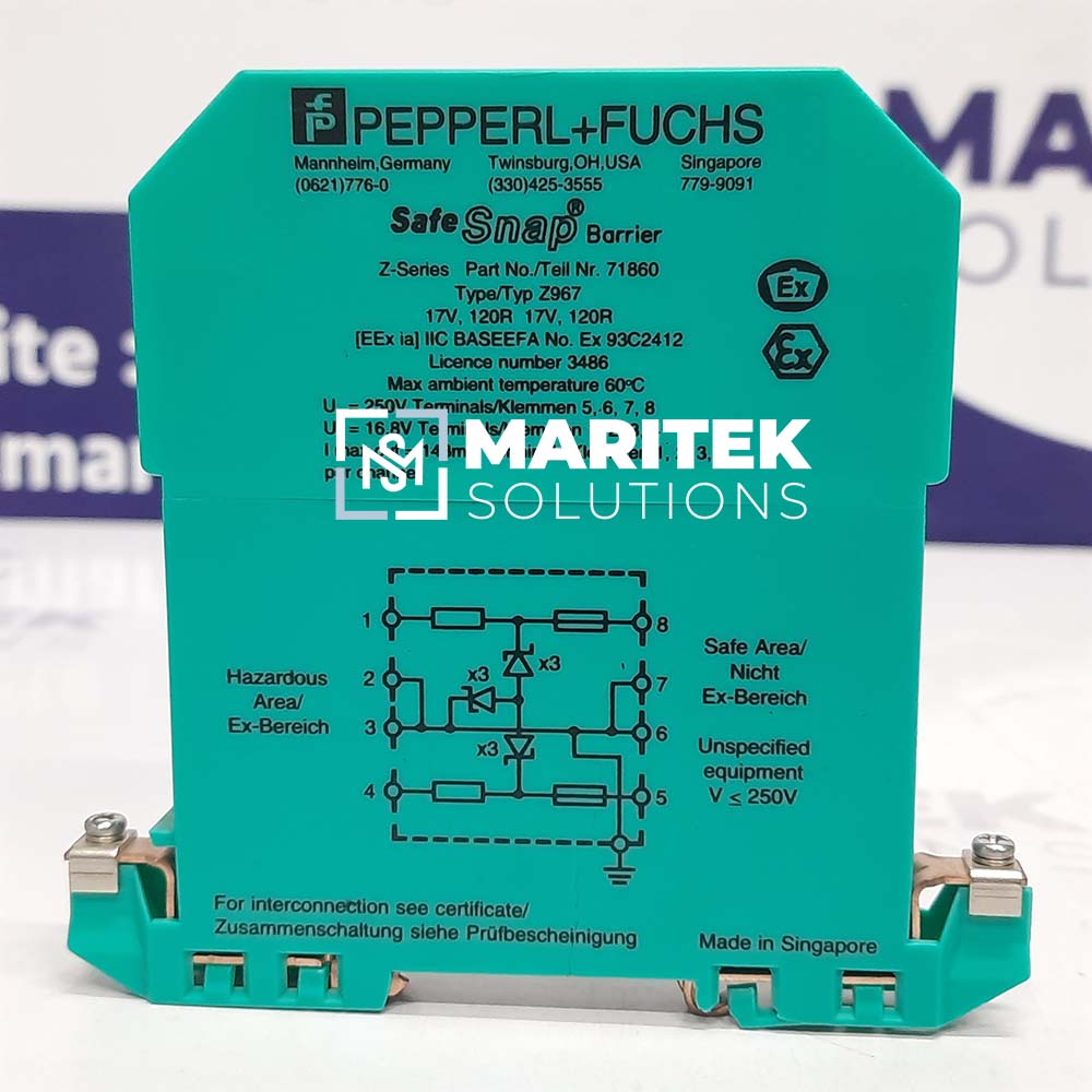 To receive a quote for Pepperl+Fuchs Z967 Zener Barrier, Kindly email us at info@mariteksolutions.com