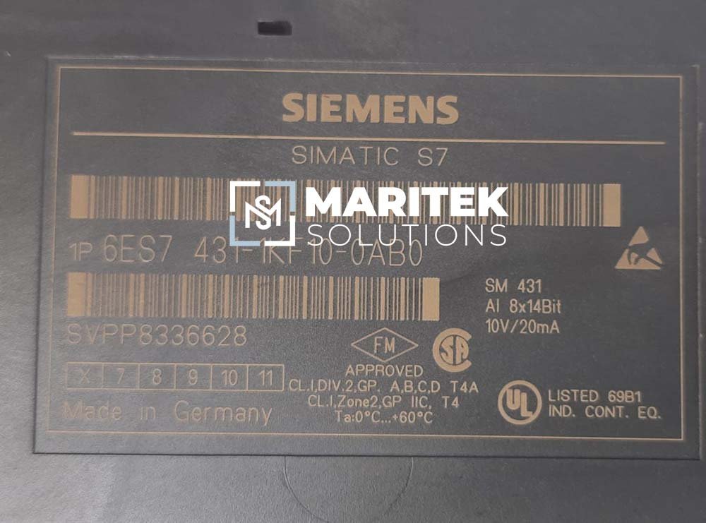 To receive a quote for Siemens 6ES7 431-1KF10-0AB0 Analog Input Module, Kindly email us at info@mariteksolutions.com.