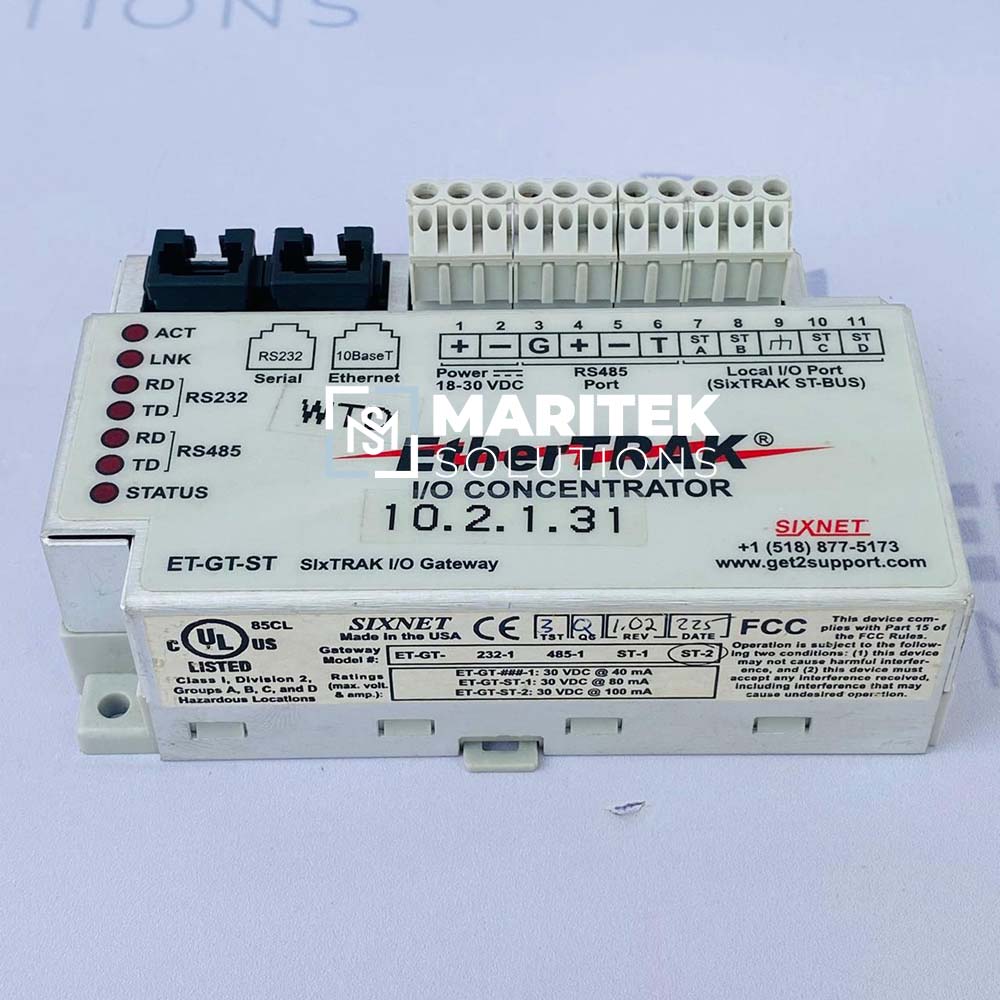 To receive a quote for Sixnet ET-GT-232-1 485-1 ST-1 ST-2 I/O Ethernet Gateway, Kindly email us at info@mariteksolutions.com.